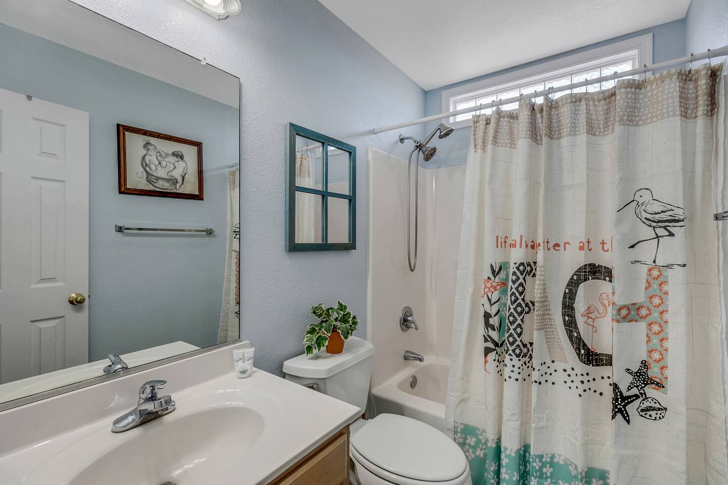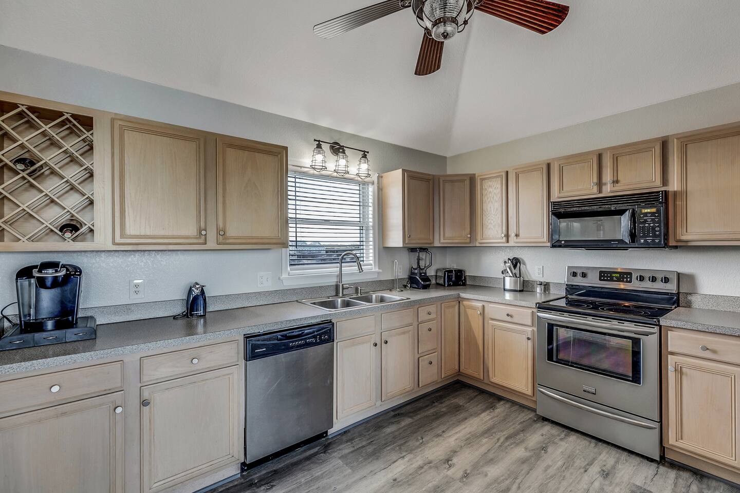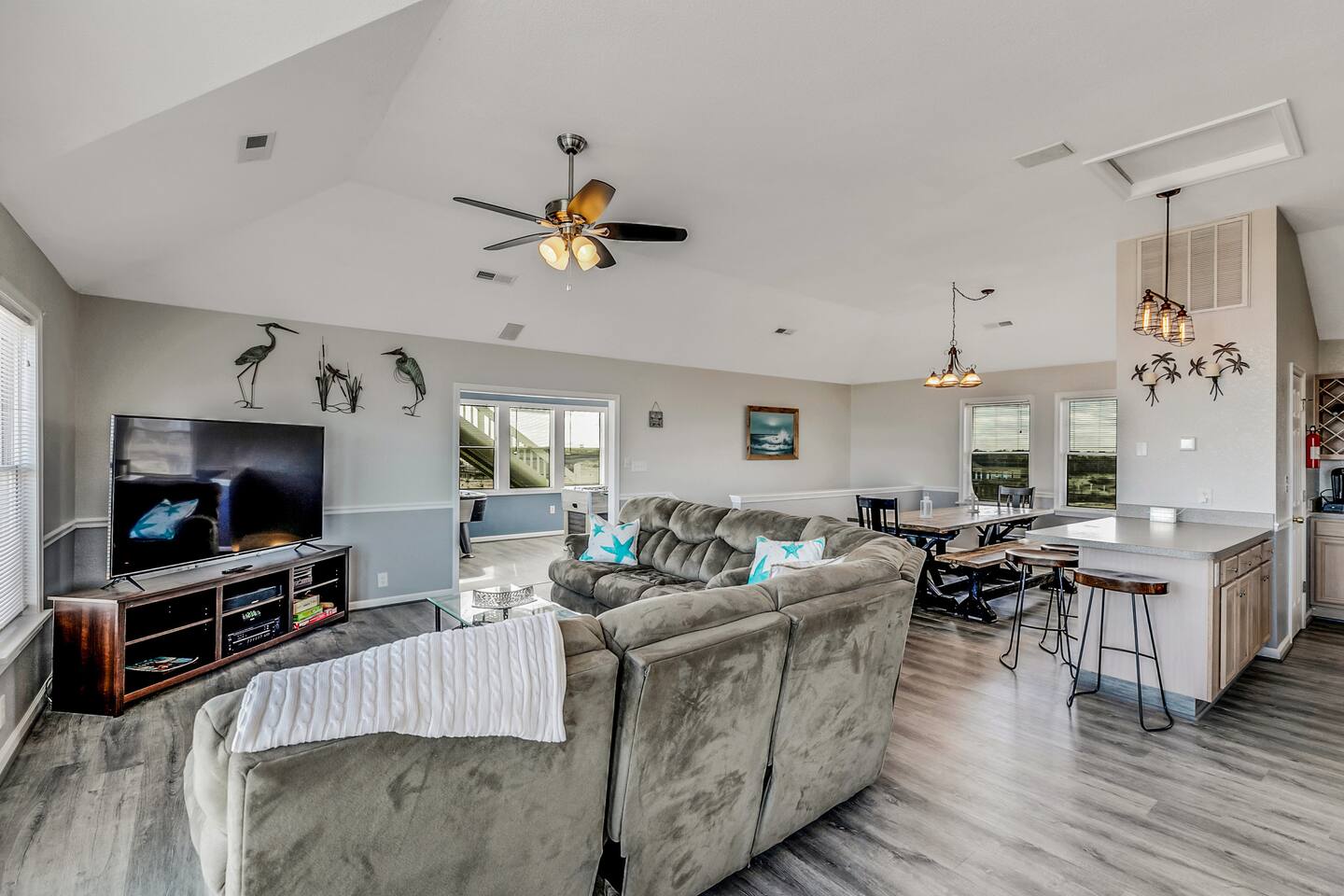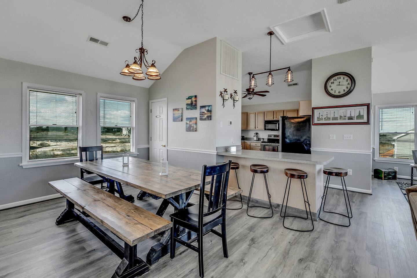 Keyless Entry. Recently redecorated, new bedding, well equipped kitchen items (new), chairs, decor and more! Wi-Fi, YouTube TV including 70 + channels on 6 televisions, plenty of parking included. Strong preference is given to 7 day rentals from May through August. There is a Ring security camera installed at the house with a view of the driveway only. No recording is saved during guest stays and the camera can be powered down on request.